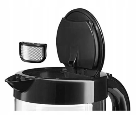 Napełnianie czajnika wodą powinno być wygodne. Pokrywa tego czajnika jest otwierana za pomocą przycisku.