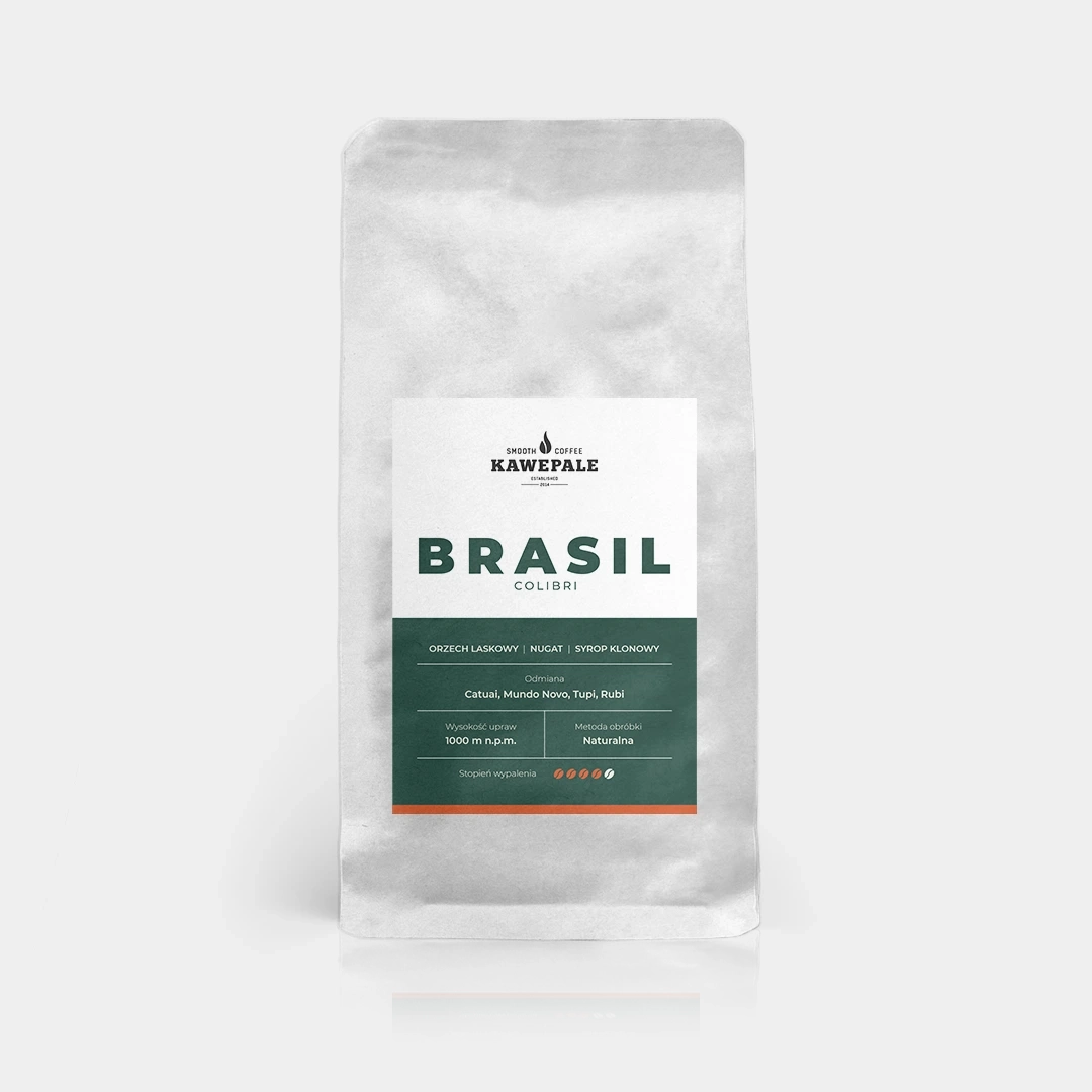 Brasil Colibri Santos to starannie wypalana arabika z południa Minas Gerais, która zachwyca swoją gładkością i harmonią. W filiżance wyczujesz przyjemne nuty prażonych orzechów laskowych, subtelny aromat nugatu i delikatną słodycz przypominającą syrop klonowy. Napar ma średnie body, niską kwasowość i aksamitną strukturę — idealny jako espresso, a także świetny do kaw mlecznych. To propozycja dla tych, którzy szukają klasycznej, dobrze zbalansowanej kawy o przyjemnym, deserowym charakterze.